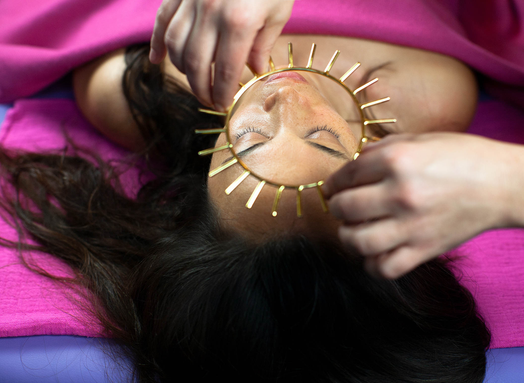 entspannende und das Nervensystem regulierende Gesichtsmassage.